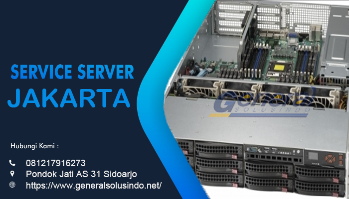 Jasa Service Server Jakarta atau Servis adalah beberapa layanan jasa yang di sediakan oleh General Solusindo, jasa Service kami meliputi Trouble Shoot Server, Rusak, mati, tidak normal, mati total, maintenance server, setting, configurasi, instalasi atau pemasangan, Backup, sewa server dan masih banyak lagi, jasa kami sering di gunakan oleh perusahaan, industri, kantor, instansi, hotel, mall, apartement, universitas, swasta, pondok pesantren, bank yang semua bisa di sesuaikan dengan kebutuhan anda, kami mencakup semua aspek yang berhubungan dengan Server atau Networking.